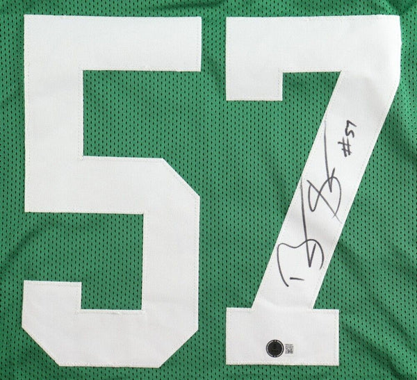 Custom on-field style jersey. Everything sewn on, size XL. Hand-signed by Bart Scott. The autograph includes an official Beckett Authentication Services serially numbered hologram and QR Code card for authenticity purposes. The signing of this item was witnessed by Beckett.Authentication: Beckett QR Code card Check out all the items in our Friendly Confines Collectibles store, Thanks for looking.