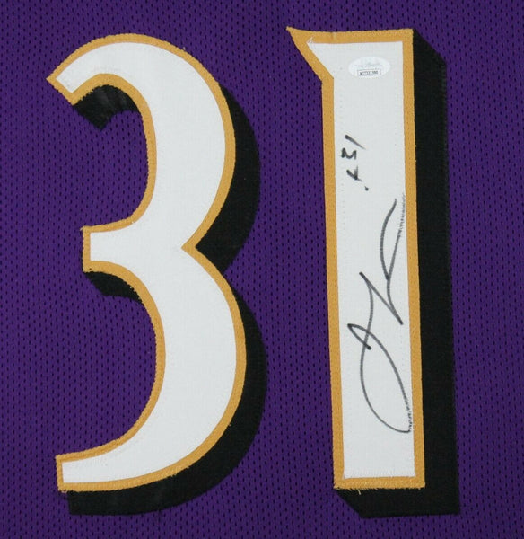 JAMAL LEWIS AUTOGRAPHED & PROFESSIONALLY FRAMED PRO-STYLE JERSEY(Occasionally our own stock pictures are used at times due to quantity of framing, all frames will look identical as the one pictured)Item is accompanied with a Certificate of Authenticity issued by JSA and corresponding tamper proof hologram on the jersey.THE FRAMED JERSEY MEASURES 35"x 44" & COMES WITH THE FOLLOWING:-UV Protected Acrylic-Triple Acid Free Team Colored Matting-2 High Quality 8"x10" Photos-Team Logo(WIRE ON BACK FOR EASY HANGING!)Free local pick up in Arlington Heights, IL