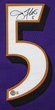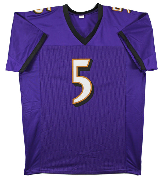 This Autographed Purple Pro Style Jersey has been Personally Signed by Joe Flacco of the Baltimore Ravens. This item is 100% Authentic to include a hologram by Beckett Authentication Services. This item will come with an affixed Beckett Authentication Services (BAS) authentication sticker, which includes a scannable QR code to verify authenticity. Please note that Beckett no longer provides serial-numbered COA cards, and the attached BAS sticker will serve as the complete authentication for this item. This is a BAS Witnessed Protection Program item which means a Beckett Authentication Service representative was present when this item was being signed. We conducted an autograph signing with Joe Flacco where multiples of the same item were signed. While the photographs are representative of this item, the size, placement and strength of the signature may vary. Each item is hand signed, therefore, each autograph is unique. This item can be verified through BAS Witnessed. This is a X-Large sized, non-branded, custom-stitched Jersey.