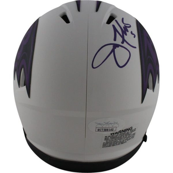 The number in the listing title is just an inventory sku for our records and is not the authentication number. The item pictured is a stock photo unless otherwise noted. This is a Baltimore Ravens Lunar Mini Helmet that was personally autographed by Joe Flacco. Includes a certificate of authenticity from James Spence Authentication (JSA) and Denver Autographs.