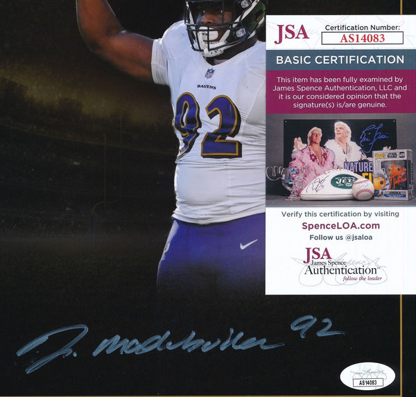 Justin Madubuike Autographed 8x10 Photo Baltimore Ravens. This Photo is authenticated by JSA and includes their Tamper-proof Hologram Sticker and Certificate of Authenticity.