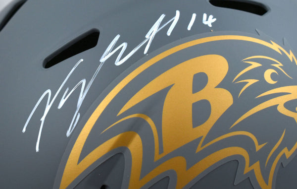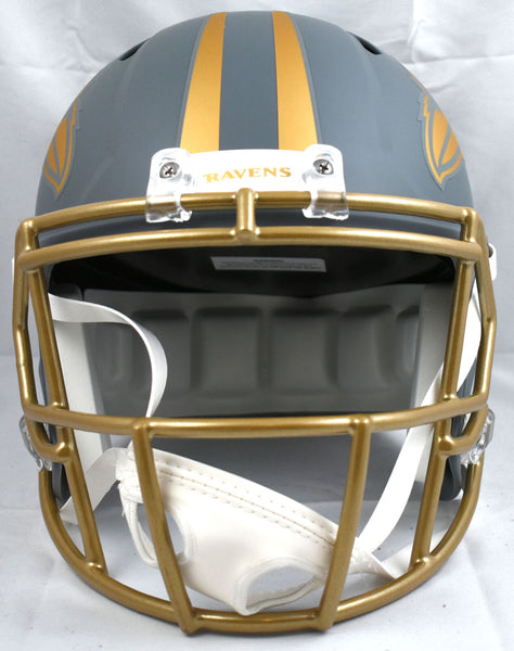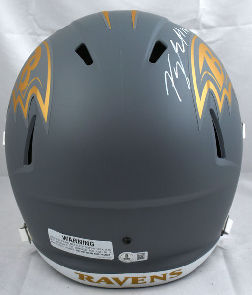 This is a hand autograph of Kyle Hamilton of the Baltimore Ravens on a Riddell Football Full Size Slate Speed Replica Helmet. This item has a Beckett Witnessed Authentication, which comes with a Beckett numbered hologram and a QR code for verification. You can view this item on Beckett Authentication website and it shows when and where the item was signed. It was signed either at a public autograph appearance or a private signing. This is a stock photo of the item. Although you may not receive this exact item, the item you receive is virtually identical and brand new in great shape. This is a hand autograph of Kyle Hamilton of the Baltimore Ravens on a Riddell Football Full Size Slate Speed Replica Helmet. This item has a Beckett Witnessed Authentication, which comes with a Beckett numbered hologram and a QR code for verification. You can view this item on Beckett Authentication website and it shows when and where the item was signed. It was signed either at a public autograph appearance or a private signing. This is a stock photo of the item. Although you may not receive this exact item, the item you receive is virtually identical and brand new in great shape.