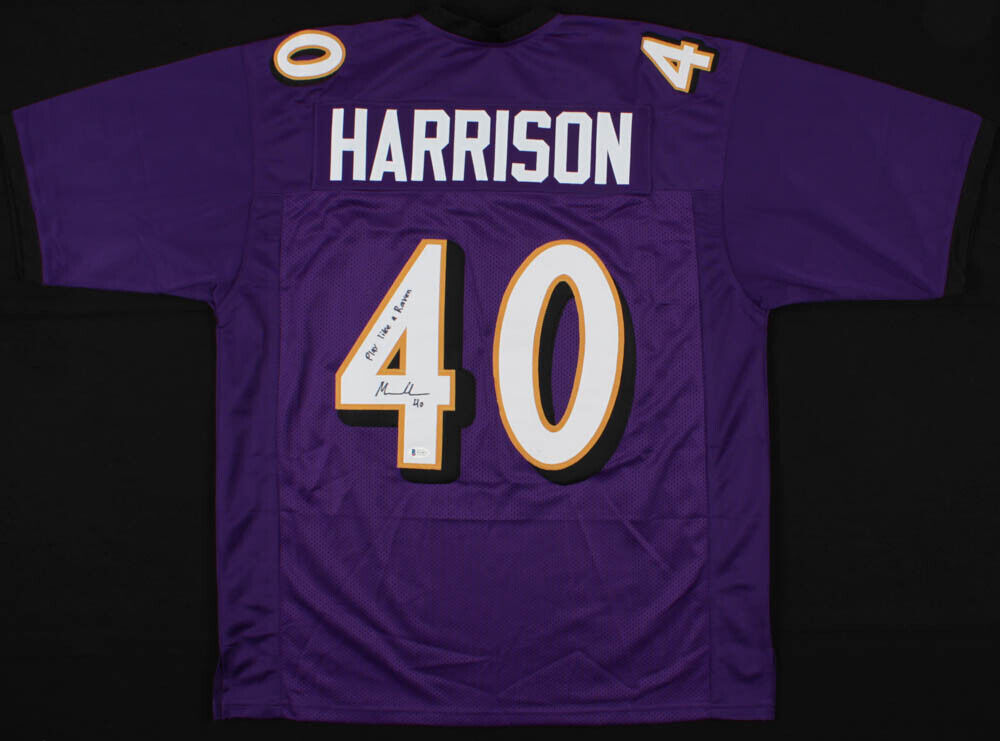 Custom on-field style jersey. Everything sewn on, size XL. Hand-signed by Malik Harrison. The lot / autograph(s) includes an official Beckett Authentication Services serially-numbered hologram and matching COA for authenticity purposes. The signing of this item was witnessed by Beckett.Authentication: Beckett COA Shop our Ebay store / Friendly Confines Collectibles for thousands of different autographed items.