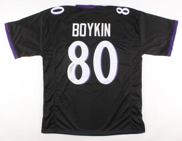 Custom on-field style jersey. Everything sewn on, size XL. Hand-signed in black felt tip pen by Miles Boykin. The lot / autograph(s) includes an official James Spence Authentication (JSA) hologram and matching COA for authenticity purposes. The signing of this item was witnessed by JSA.Authentication: JSA COA
