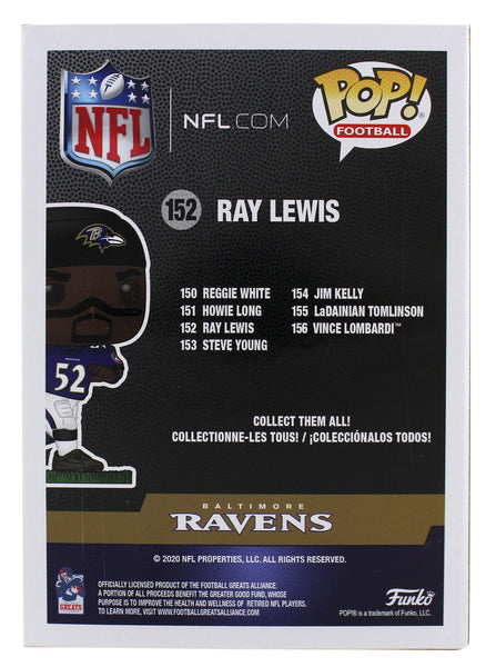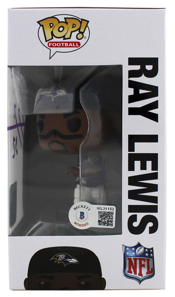 This Autographed #152 Funko Pop Vinyl Figure has been Personally Signed by Ray Lewis of the Baltimore Ravens. This item is 100% Authentic to include a hologram by Beckett Authentication Services. This item will come with the new Beckett Authentication hologram that has a scannable QR code rather than the traditional COA. If you would like to have a COA, you are welcome to reach out to Beckett for a printed certification once you receive your item. This is a BAS Witnessed Protection Program item which means a Beckett Authentication Service representative was present when this item was being signed. This is a stock item. We conducted an autograph signing with Ray Lewis and we have several of these available. The one you will receive will be of equal quality to the one pictured. This item can be verified through BAS Witnessed. The boxes will have some handling wear from shipping to and from the signing. They will ship to you in a pop protector.