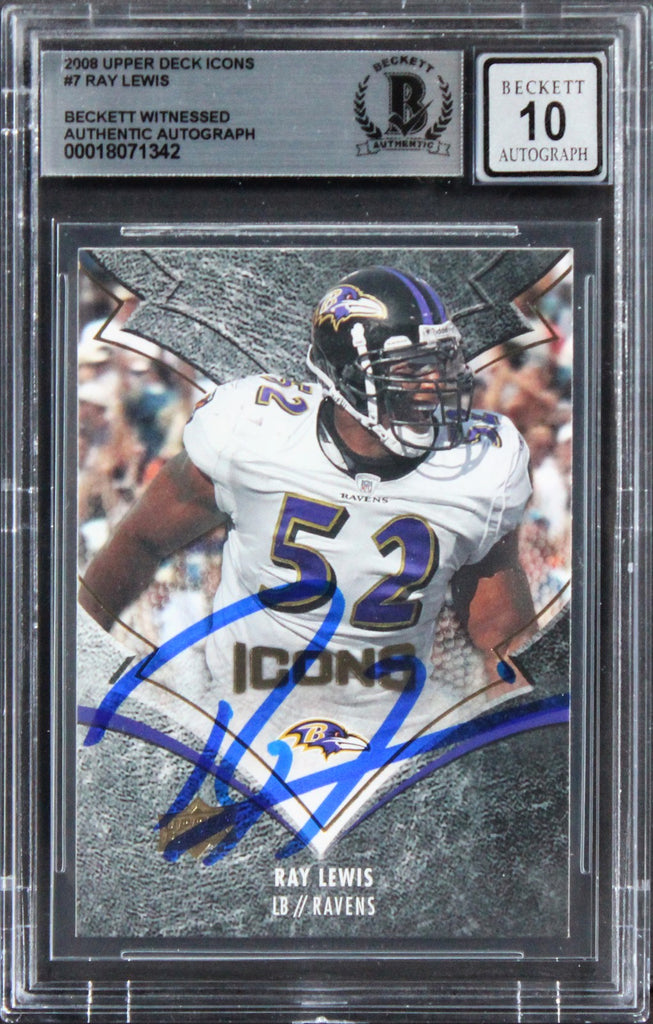 Ravens Ray Lewis Signed 2008 Upper Deck Icons #7 Card Auto Mint 10! BAS Slabbed