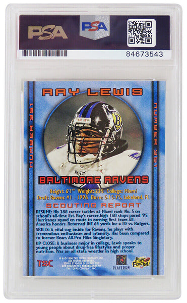 Ray Lewis autographed 1996 Topps Stadium Club RC Card #351 (PSA-Auto Grade 10)