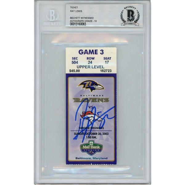 Ray Lewis Autographed Baltimore Ravens 10/26/03 Ticket Stub Beckett 47569