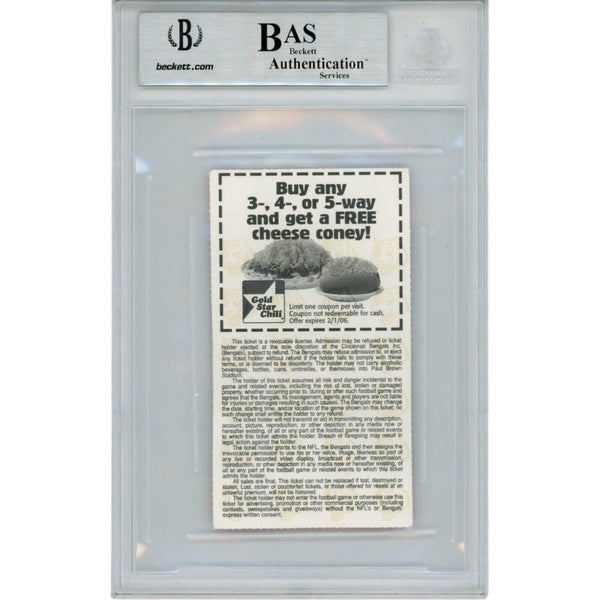 The number in the listing title is just an inventory sku for our records and is not the authentication number. The item pictured is the exact item you will receive, please see photos for condition. This is a Baltimore Ravens Slabbed 11/27/2005 Ticket Stub that was personally autographed by Ray Lewis. Includes a certificate of authenticity from Beckett Authentication Services (BAS) and Denver Autographs.FREE SHIPPING within the USA on orders over $10!