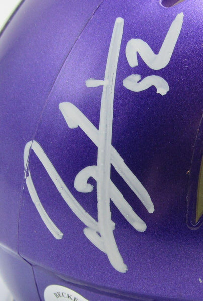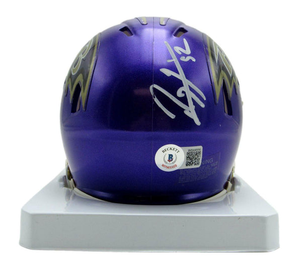 Ray Lewis HOF Signed/Autographed Baltimore Ravens Purple Flash Mini Football Helmet. This helmet is authenticated by BAS/Beckett and includes their Tamper-proof Hologram Sticker.