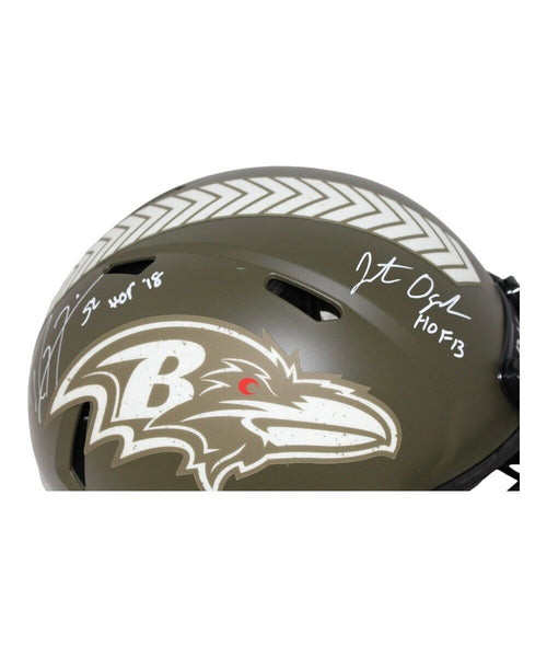 Ray Lewis Jonathan Ogden Signed Ravens Pro Salute HOF Helmet Beckett 41211