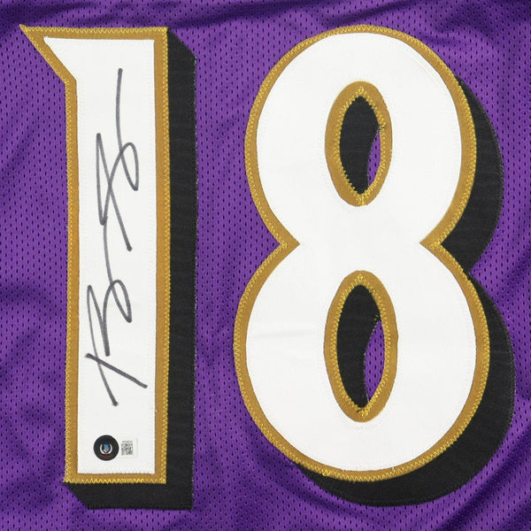 Custom on-field style jersey. Everything sewn on, size XL. Hand-signed by Roquan Smith. The autograph includes an official Beckett Authentication Services serially numbered Scannable hologram and QR Code Card for authenticity purposes. The signing of this item was witnessed by Beckett.Authentication: Beckett Scannable Hologram with QR Code Card