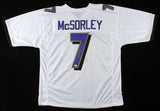 Custom on-field style jersey. Everything sewn on, size XL. Hand-signed by Trace McSorley.The lot / autograph(s) includes an official James Spence Authentication (JSA) hologram for authenticity purposes. The signing of this item was witnessed by JSA. Authentication: JSA Hologram Check out all the items in our Friendly Confines Collectibles store, Thanks for looking.