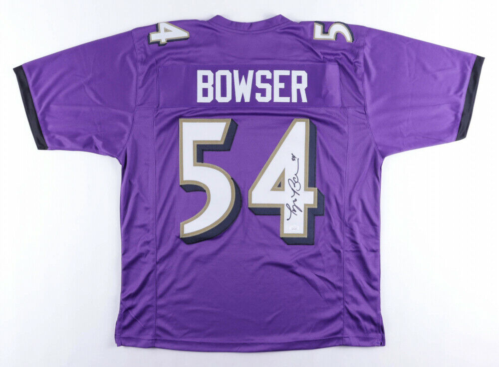 Custom on-field style jersey. Everything is sewn on, size XL. Hand-signed by Tyus Bowser.The lot / autograph(s) includes an official James Spence Authentication (JSA) hologram and matching COA for authenticity purposes.Authentication: JSA COA
