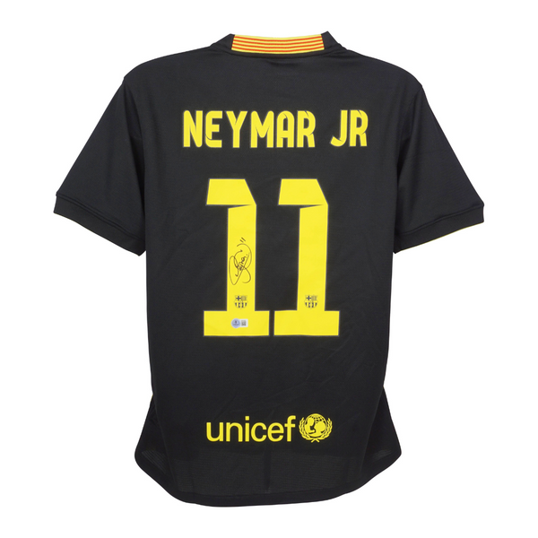 This is a Neymar Jr Signed FC Barcelona Soccer Jersey #11 with Beckett COA. THE ITEM IN THE PICTURE IS A STOCK IMAGE. YOU WILL RECEIVE AN IDENTICAL ITEM OF EQUAL QUALITY. ALL JERSEYS ARE SIZE LARGE. Every item of signed memorabilia we sell is official and of the highest quality. We pride ourselves on providing sports fans with the most exclusive signed memorabilia on the market. We are an industry leading signed memorabilia company who can guarantee 100% authenticity on every signature we sell. The item you receive will be identical to the one you are seeing in the stock pictures. This includes the item, the authentication company, signature color and signature placement. We take pride in ensuring the authenticity of all our items. With unwavering commitment, we guarantee that every signature is 100% authentic. Every item of signed memorabilia comes with a scannable barcode which takes you to the certificate of authenticity on the company's website. These industry leading authentication companies include Beckett Authentication Services, James Spencer Authentication Services and Professional Sports Authentication Services.