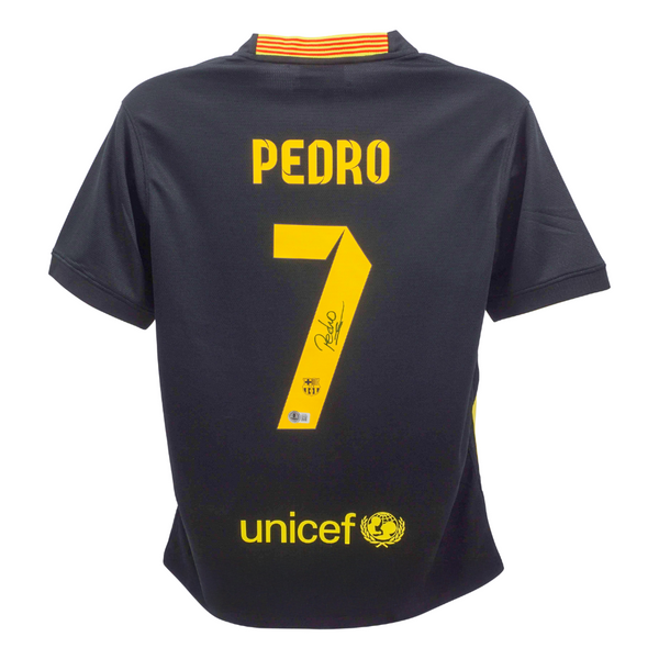 This is a Pedro Signed FC Barcelona Away Soccer Jersey #7 with Beckett COA. THE ITEM IN THE PICTURE IS A STOCK IMAGE. YOU WILL RECEIVE AN IDENTICAL ITEM OF EQUAL QUALITY. ALL JERSEYS ARE SIZE LARGE. Every item of signed memorabilia we sell is official and of the highest quality. We pride ourselves on providing sports fans with the most exclusive signed memorabilia on the market. We are an industry leading signed memorabilia company who can guarantee 100% authenticity on every signature we sell. The item you receive will be identical to the one you are seeing in the stock pictures. This includes the item, the authentication company, signature color and signature placement. We take pride in ensuring the authenticity of all our items. With unwavering commitment, we guarantee that every signature is 100% authentic. Every item of signed memorabilia comes with a scannable barcode which takes you to the certificate of authenticity on the company's website. These industry leading authentication companies include Beckett Authentication Services, James Spencer Authentication Services and Professional Sports Authentication Services.