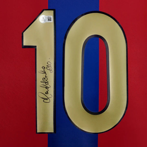 This is a Ronaldinho Signed FC Barcelona Home Soccer Jersey #10 with Beckett COA. THE ITEM IN THE PICTURE IS A STOCK IMAGE. YOU WILL RECEIVE AN IDENTICAL ITEM OF EQUAL QUALITY. ALL JERSEYS ARE SIZE LARGE. Every item of signed memorabilia we sell is official and of the highest quality. We pride ourselves on providing sports fans with the most exclusive signed memorabilia on the market. We are an industry leading signed memorabilia company who can guarantee 100% authenticity on every signature we sell. The item you receive will be identical to the one you are seeing in the stock pictures. This includes the item, the authentication company, signature color and signature placement. We take pride in ensuring the authenticity of all our items. With unwavering commitment, we guarantee that every signature is 100% authentic. Every item of signed memorabilia comes with a scannable barcode which takes you to the certificate of authenticity on the company's website. These industry leading authentication companies include Beckett Authentication Services, James Spencer Authentication Services and Professional Sports Authentication Services.