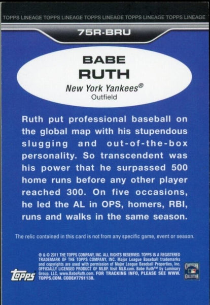 2011 Topps Lineage '75 Mini Relics Babe Ruth Authentic Game Used Bat SP #75R-BRU
