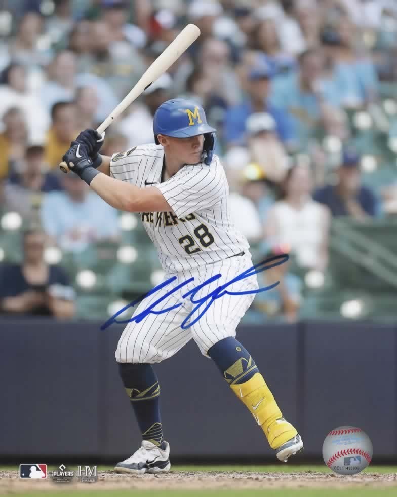 An 8x10 hand signed photo of Milwaukee Brewers Infielder ANDREW VAUGHN. The signature is in Blue Sharpie. This item was signed at a private signing with us. This would make a great addition to any BREWERS collection! This item is guaranteed to be 100% authentic and will include a store COA with matching tamper proof holograms.