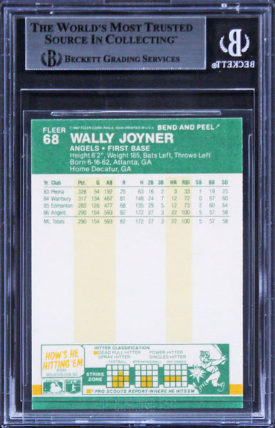This Autographed 1987 Fleer Star Stickers #68 Card has been Personally Signed by Wally Joyner of the Los Angeles Angels. This item is 100% Authentic, it comes slabbed and authenticated by Beckett Authentication Services. The authenticity can be verified on Beckett Authentication Services website.