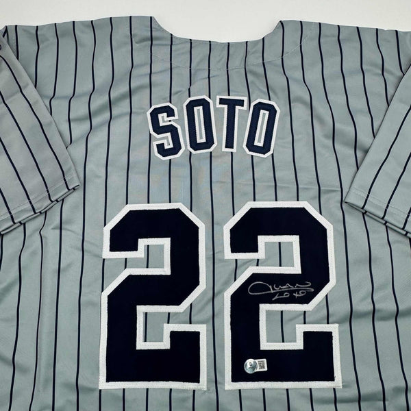 Autographed/Signed Juan Soto New York City Connect Baseball Jersey Beckett COA Jersey has no brand names or logos. This is a custom jersey and was not manufactured by or in any manner associated with any professional sports league or manufacturer. This custom jersey carries no professional sports league designation. The item is intended to be an autographed collectible. The custom jersey displays the name and number of the player. This item in no way is affiliated with or connected to any professional sports organization. Size is XL.