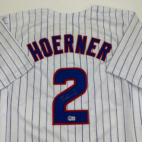 Autographed/Signed Nico Hoerner Chicago Baseball Jersey Beckett BAS COA