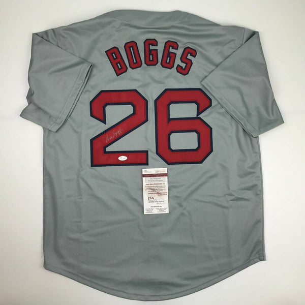 Autographed/Signed WADE BOGGS Boston Grey Baseball Jersey JSA COA Auto This is a custom jersey and was not manufactured by or in any manner associated with any professional sports league or manufacturer. This custom jersey carries no professional sports league designation. The item is intended to be an autographed collectible. Reference of team in the title is to allow the purchaser a point of association. The custom jersey displays the name, number and authenticated signature of the player. This item in no way is affiliated with or connected to any professional sports organization. The autograph, as always is guaranteed to be authentic and has been certified as authentic by a third-party, trusted authenticator. Size is XL unless otherwise noted.