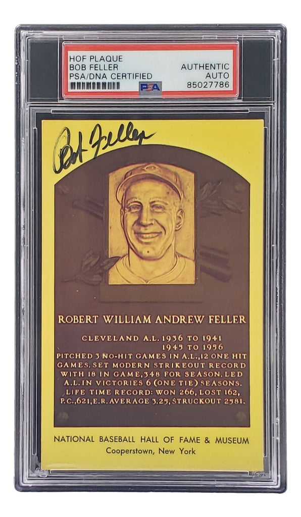 Bob Feller Signed 4x6 Cleveland Hall Of Fame Plaque Card PSA/DNA 85027786