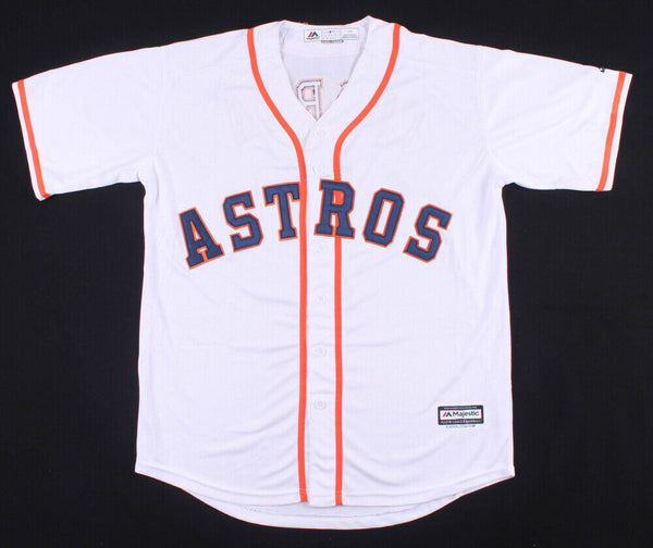 Custom on-field Majestic style jersey. Everything is sewn on, size Adult Large. Has been hand-signed in silver paint pen by Carlos Correa (Houston Astros). The lot / autograph(s) includes an official James Spence Authentication (JSA) hologram and matching COA for authenticity purposes.Authentication: JSA COA