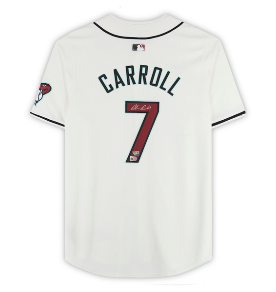 Corbin Carroll Autographed Arizona Diamondbacks White Nike Limited Jersey FanaticsThis jersey has been personally hand-signed by Corbin Carroll. It has been obtained under the auspices of the MLB Authentication Program and can be verified by its numbered hologram at MLB.Com. It also comes with an individual numbered, tamper-evident hologram from Fanatics Authentic. This process helps to ensure that the product purchased is authentic and eliminates any possibility of duplication or fraud. Made in the USA Personally Autographed by Corbin Carroll Fanatics Authentic Presented by Mounted Memories Includes tamper-evident hologram to ensure authenticity Officially licensed This product is guaranteed authentic and includes a Fanatics Certificate of Authenticity and an accompanying tamper-evident Fanatics Hologram.