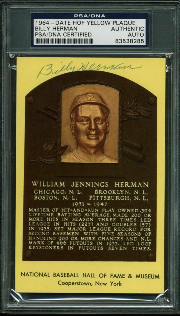 This CUBS BILLY HERMAN AUTHENTIC SIGNED HOF PLAQUE POSTCARD PSA/DNA SLABBED has been certified authentic. It comes slabbed and authenticated by PSA/DNA. You can also see the authentication on the PSA/DNA website, PSAcard.com.