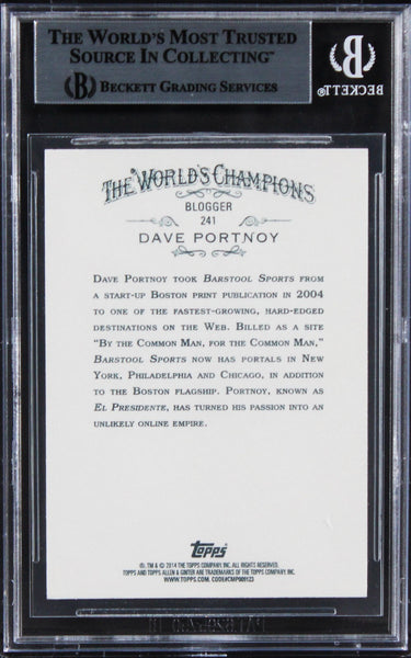 This Autographed 2014 Topps Allen & Ginter #241 Card has been Personally Signed by Dave Portnoy. This item is 100% Authentic, it comes slabbed and authenticated by Beckett Authentication Services. The authenticity can be verified on Beckett Authentication Services website.