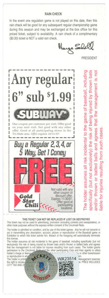 Deion Sanders Signed Cincinnati Reds 4/25/1997 vs Phillies Ticket BAS 37195 The number in the listing title is just an inventory sku for our records and is not the authentication number. The item pictured is a stock photo unless otherwise noted. This is a authentic ticket stub that was personally autographed by Deion Sanders. Includes a certificate of authenticity from Beckett Authentication Services (BAS) and Denver Autographs.