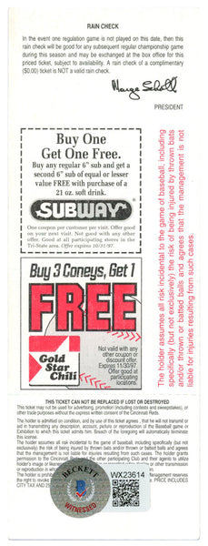Deion Sanders Signed Cincinnati Reds 4/28/1997 vs Mets Ticket BAS 37197 The number in the listing title is just an inventory sku for our records and is not the authentication number. The item pictured is a stock photo unless otherwise noted. This is a authentic ticket stub that was personally autographed by Deion Sanders. Includes a certificate of authenticity from Beckett Authentication Services (BAS) and Denver Autographs.