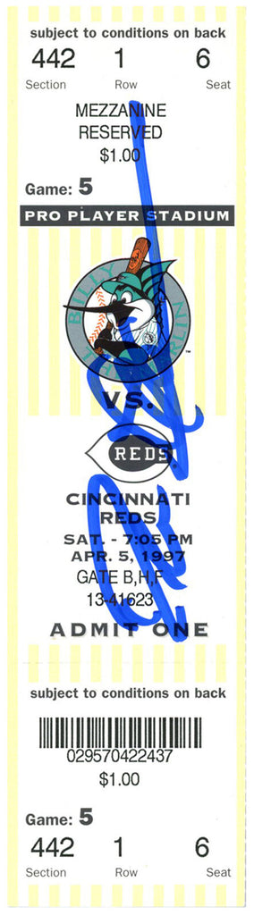 Deion Sanders Signed Cincinnati Reds 4/5/1997 @ Marlins Ticket BAS 37167 The number in the listing title is just an inventory sku for our records and is not the authentication number. The item pictured is a stock photo unless otherwise noted. This is a authentic ticket stub that was personally autographed by Deion Sanders. Includes a certificate of authenticity from Beckett Authentication Services (BAS) and Denver Autographs.