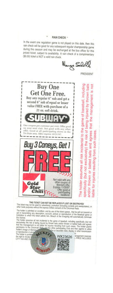 Deion Sanders Signed Cincinnati Reds 5/15/1997 vs Dodgers Ticket BAS 37236 The number in the listing title is just an inventory sku for our records and is not the authentication number. The item pictured is a stock photo unless otherwise noted. This is a authentic ticket stub that was personally autographed by Deion Sanders. Includes a certificate of authenticity from Beckett Authentication Services (BAS) and Denver Autographs.