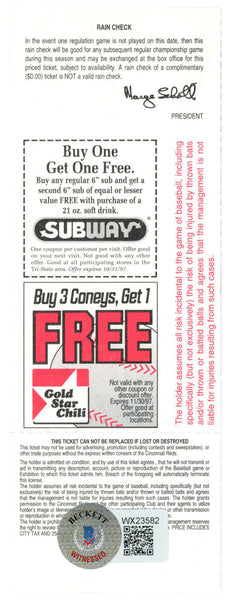 Deion Sanders Signed Cincinnati Reds 7/13/1997 vs Expos Ticket BAS 37218 The number in the listing title is just an inventory sku for our records and is not the authentication number. The item pictured is a stock photo unless otherwise noted. This is a authentic ticket stub that was personally autographed by Deion Sanders. Includes a certificate of authenticity from Beckett Authentication Services (BAS) and Denver Autographs.