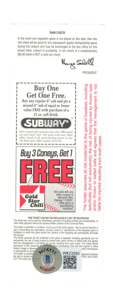 Deion Sanders Signed Cincinnati Reds 8/9/1997 vs Dodgers Ticket BAS 37229 The number in the listing title is just an inventory sku for our records and is not the authentication number. The item pictured is a stock photo unless otherwise noted. This is a authentic ticket stub that was personally autographed by Deion Sanders. Includes a certificate of authenticity from Beckett Authentication Services (BAS) and Denver Autographs.