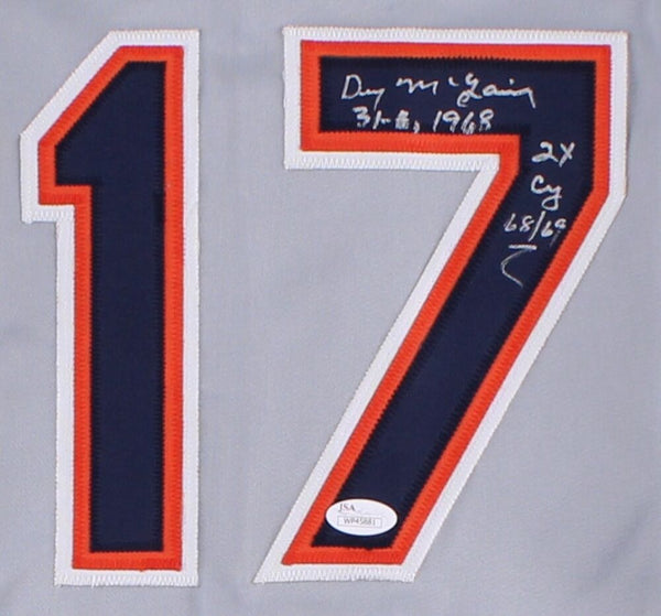 Denny McLain Signed 1968 Tigers Jersey Inscribed "31-6, 1968" & "2x CY 68/69"