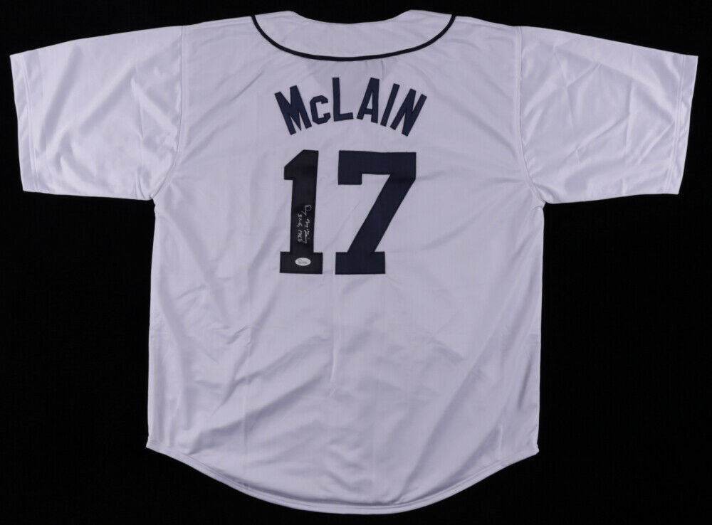 Custom on-field style jersey. Everything sewn on, size XL. Hand-signed in silver paint pen by Denny McClain (Tigers). The autograph includes an official James Spence Authentication (JSA) hologram for authenticity purposes. The signing of this item was witnessed by JSA.Authentication: JSA Hologram