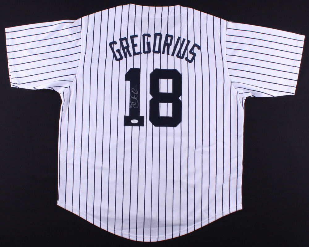 Custom on-field style jersey. Everything sewn on, size XL. Hand signed in silver paint pen by Didi Gregorius. The lot / autograph(s) includes an official James Spence Authentication (JSA) hologram and matching COA for authenticity purposes.Authentication: JSA COA