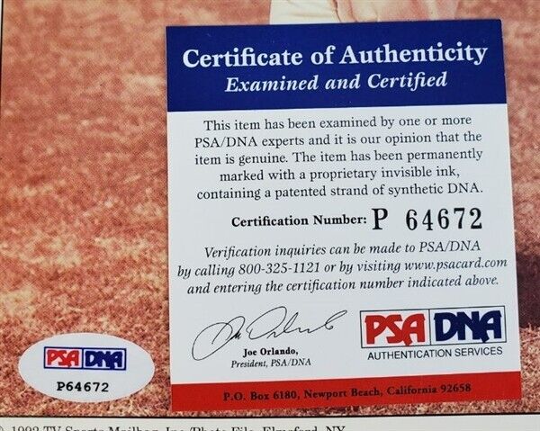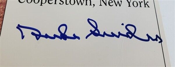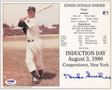 This autographed 8x10 photo has been personally hand-signed by Duke Snider of the Brooklyn Dodgers. Snider died on February 27, 2011, at age 84 of an undisclosed illness at the Valle Vista Convalescent Hospital in California. He was the last living Brooklyn Dodger who was on the field for the final out of the 1955 World Series. This autograph is certified by PSA/DNA (Professional Sports Authenticators). It comes with the numbered hologram and matching Certificate of Authenticity.
