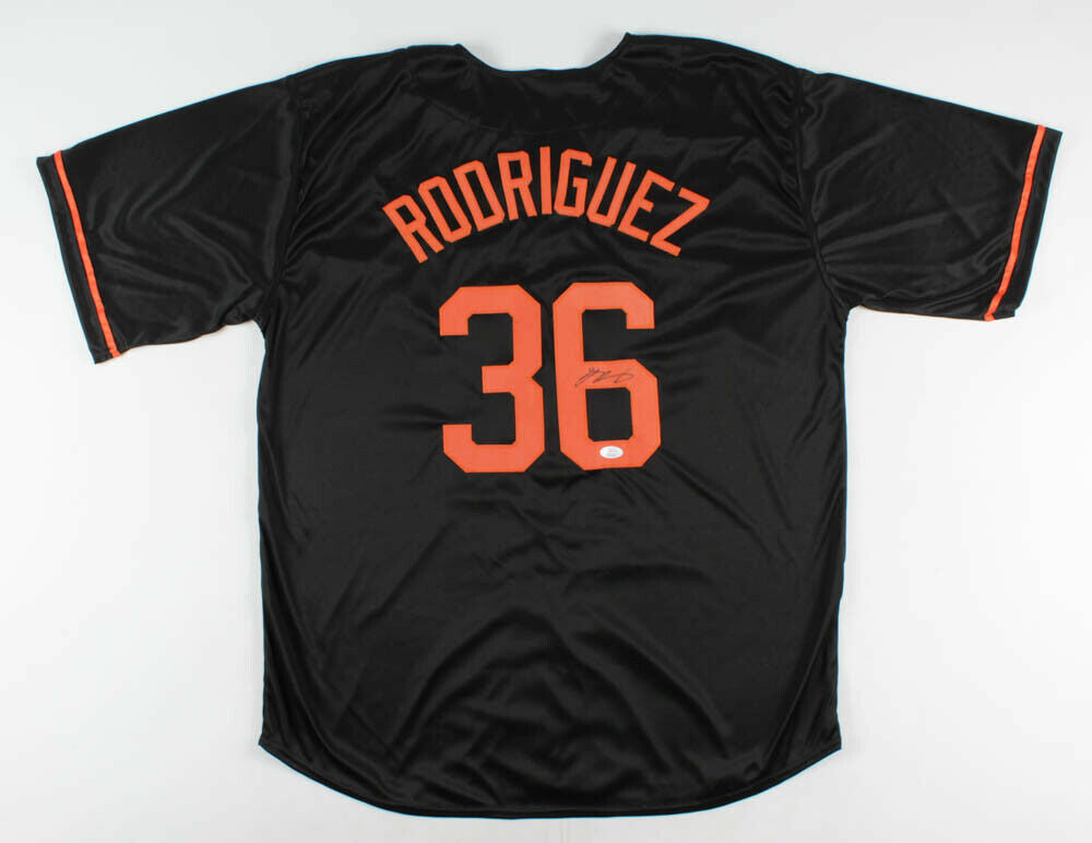 Custom on-field style jersey. Everything is sewn on, size XL. Hand-signed by Grayson Rodriguez. The lot / autograph(s) includes an official James Spence Authentication (JSA) hologram and matching COA for authenticity purposes. The signing of this item was witnessed by JSA.Authentication: JSA COA