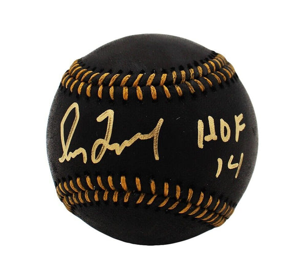 An Atlanta Braves Rawlings Official Major League Black MLB Baseball Hand Signed By Greg Maddux. The item and signature are in excellent condition. In addition to signing his name Greg also inscribed "HOF 14" on the item. Greg is an American college baseball coach and former MLB pitcher. He is the pitching coach at the University of Nevada, Las Vegas. Maddux is best known for his accomplishments while playing for the Atlanta Braves and the Chicago Cubs. With the Braves, he won the 1995 World Series over the Cleveland Indians. AUTHENTICATION: Your item is tagged with a SmarTag powered by Prova Technology, which gives you digital access to your items authentication records, which includes a proof picture from the signing.