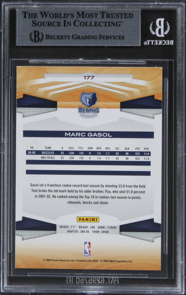 This Autographed 2009 Panini #177 Card has been Personally Signed by Marc Gasol of the Memphis Grizzlies. This item is 100% Authentic, it comes slabbed and authenticated by Beckett Authentication Services. The authenticity can be verified on Beckett Authentication Services website.