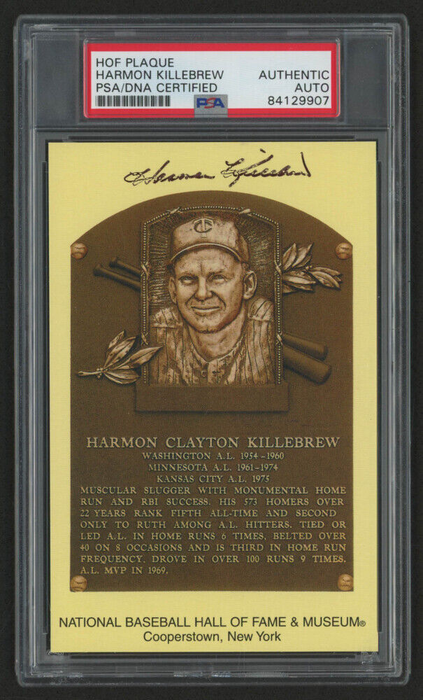 The card has been hand-signed in black felt-tip pen by Harmon Killebrew (D.2011, Minnesota Twins, HOF).The item / autograph(s) has been authenticated and encapsulated by PSA/DNA for authenticity purposes.Authentication: PSA Encapsulated