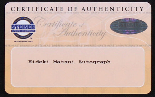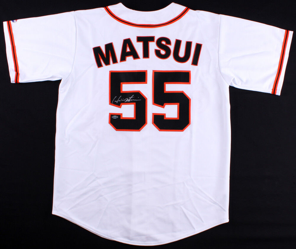 Custom on-field style jersey. Everything is sewn on, size XL. Hand-signed in silver paint pen by Hideki Matsui (HOF, Yankees). The lot / autograph(s) includes an official Steiner Sports hologram and matching COA for authenticity purposes.Authentication: Steiner COA