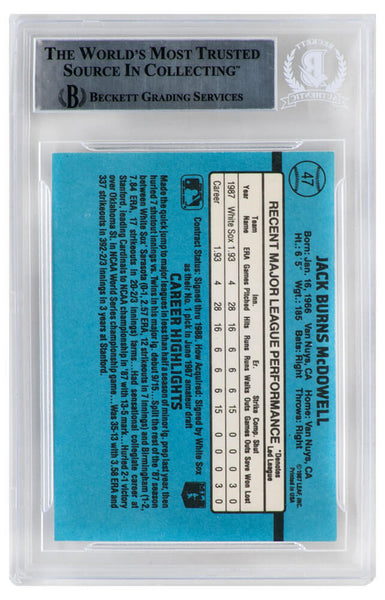 Jack McDowell signed Chicago White Sox 1988 Donruss Rated Rookie baseball card #47. The card has been authenticated and encapsulated by Beckett Authentic and the authentication number can be verified online. The image of the item is a stock photo, as we may have multiples of the item in stock. The Slabbed Card you will receive will be of the card described. (Same grade, Same authentication) You may or may not receive the exact Beckett serial number on the slab label shown in image.