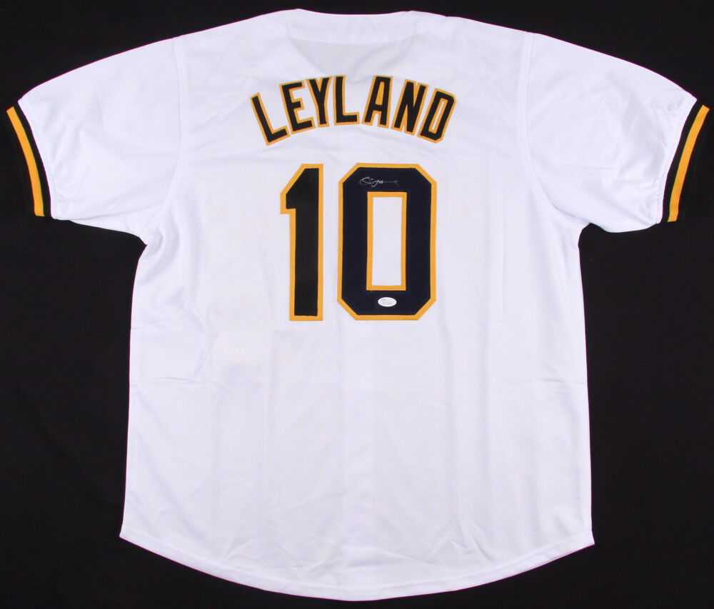 Custom on-field style jersey. Everything is sewn on, size XL. Hand-signed in silver paint pen by Jim Leyland. The lot / autograph(s) includes an official James Spence Authentication (JSA) hologram and matching COA for authenticity purposes. The signing of this item was witnessed by JSA.Authentication: JSA COA