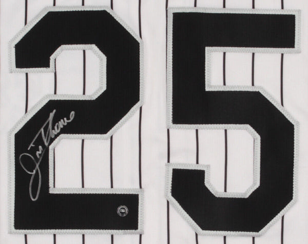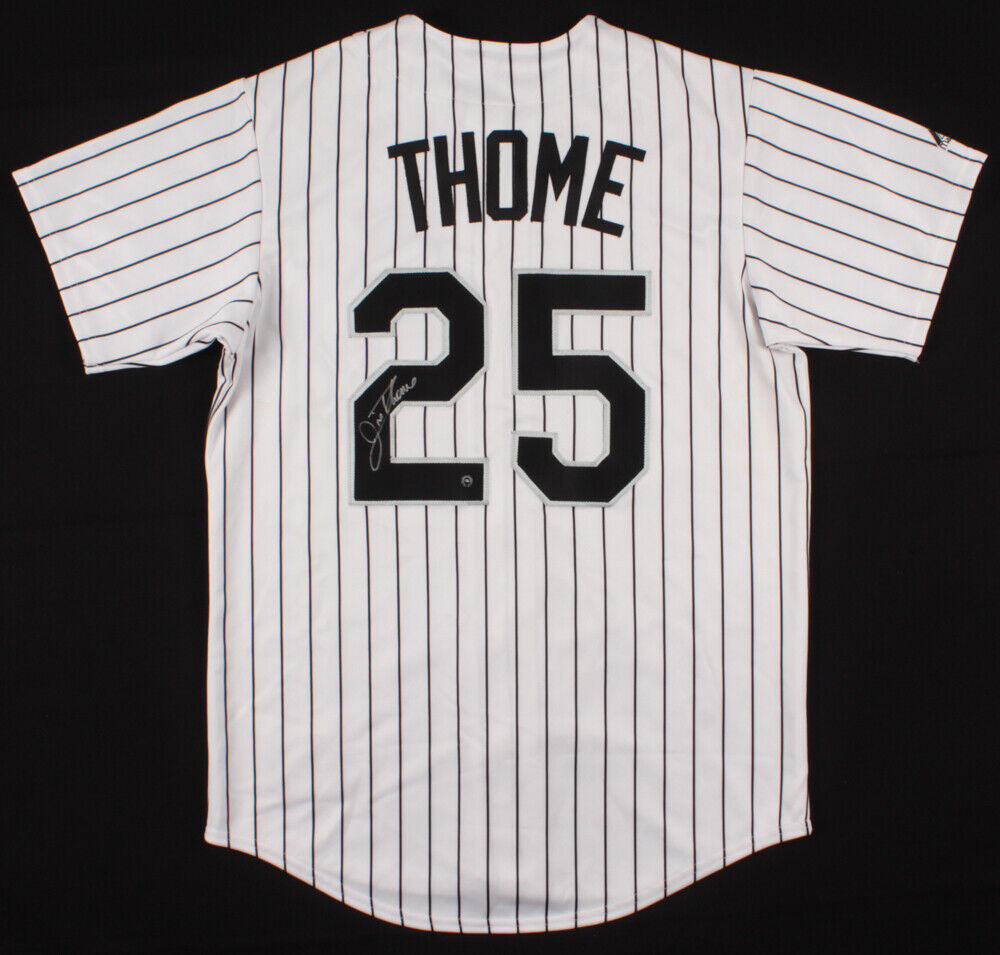 Majestic on-field style jersey. Everything is sewn on, size M. Hand-signed in silver paint pen by Jim Thome. The lot / autograph(s) includes an official MLB Authentication hologram for authenticity purposes, as well as an official Mounted Memories hologram for authenticity purposes.Authentication: MLB Hologram & Mounted Memories Hologram